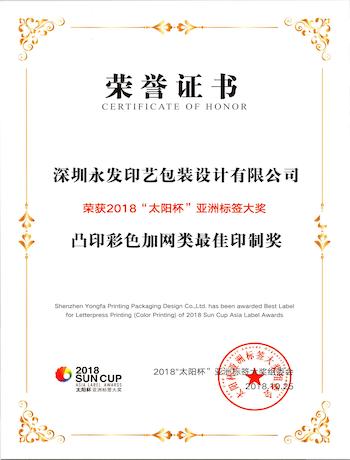 2018“太陽杯”亞洲標籤大獎:凸印彩色...