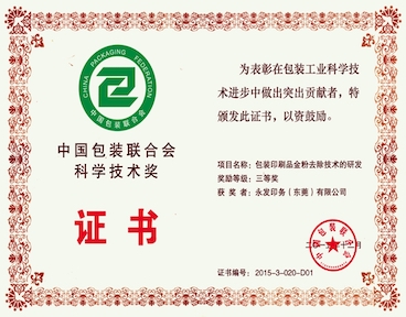 2015年中包聯科學技術獎三等獎:包裝...