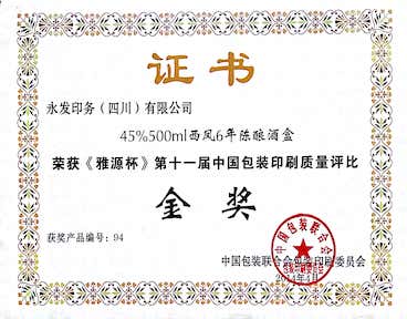 2014中國包裝印刷質量評比金獎:西鳳...